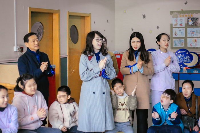 在康复中心先生的指导下,各人依次旅行了学校的康复评定室、感受统合训练室、地板时光训练室等十余种特殊训练课堂。这时代,我们见到了许多自闭症儿童,有些孩子对我们这些“外来人”置若罔闻,但在各人耐心的相同下,有些孩子最先有所回应,愿意与我们互动。在融合教育训练室里,我们感受了他们相较于正常孩子更难以集中注重力,难以控制自己的行为以及拒绝相同带来的贫困。虽然,我们看到了大大都孩子无比可爱的笑容、迎来了他们热情的拥抱。一首《虫儿飞》拉近了我们与孩子们的距离,有些能力强的孩子甚至凑在我们身边撒娇,盼愿获得表扬。只管这些“星星的孩子”困于自己的天下,可是他们并没有放弃与外界探索,拥有着属于他们这个年岁的蓬勃生气。